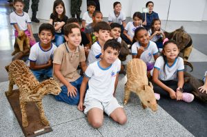 Momento prestigiado pelas demais crianças e adolescentes, professores e envolvidos na realização do evento pela Unoeste e Polícia Ambiental, com as presenças do Dr. Adilson e da educadora ambiental cabo PM Elis Ângela Brito da Silva.