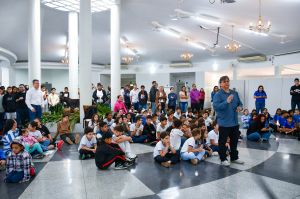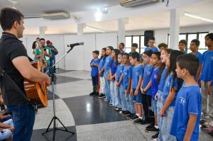 A apresentação musical das crianças foi conduzida por Rafael Farinelli, ao violão; a música em Libras com orientação de Giandra Santa Alves dos Santos; e percussão com o maestro Edson Farinelli, mais conhecido como Batata.