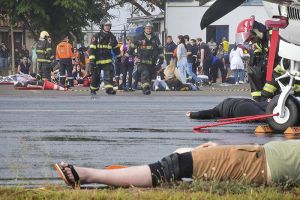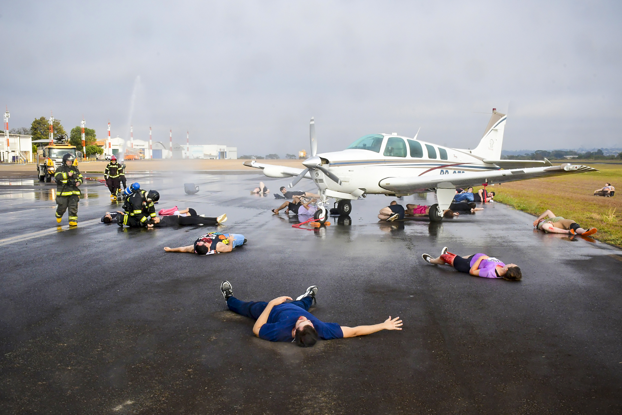 Pessoas machucadas, fumaça, gritos, um avião na pista e movimentação de equipes de resgate. Este cenário foi montado para uma simulação de catástrofe, que envolveu mais de 100 alunos e, ao todo, 300 pessoas no Aeroporto Estadual Adhemar de Barros, em Presidente Prudente, por volta das 8h de domingo (24), como forma de treinamento prático de como agir em situações como esta.