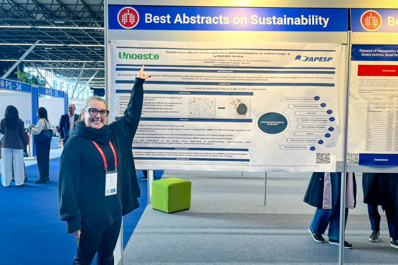 Com o tema “Efeitos deletérios dos microplásticos e nanoplásticos em pulmões de roedores: uma revisão sistemática”, o estudo foi apresentado no evento realizado em Amsterdam, na Holanda, de 27 de setembro a 1º de outubro; on-line e presencial.